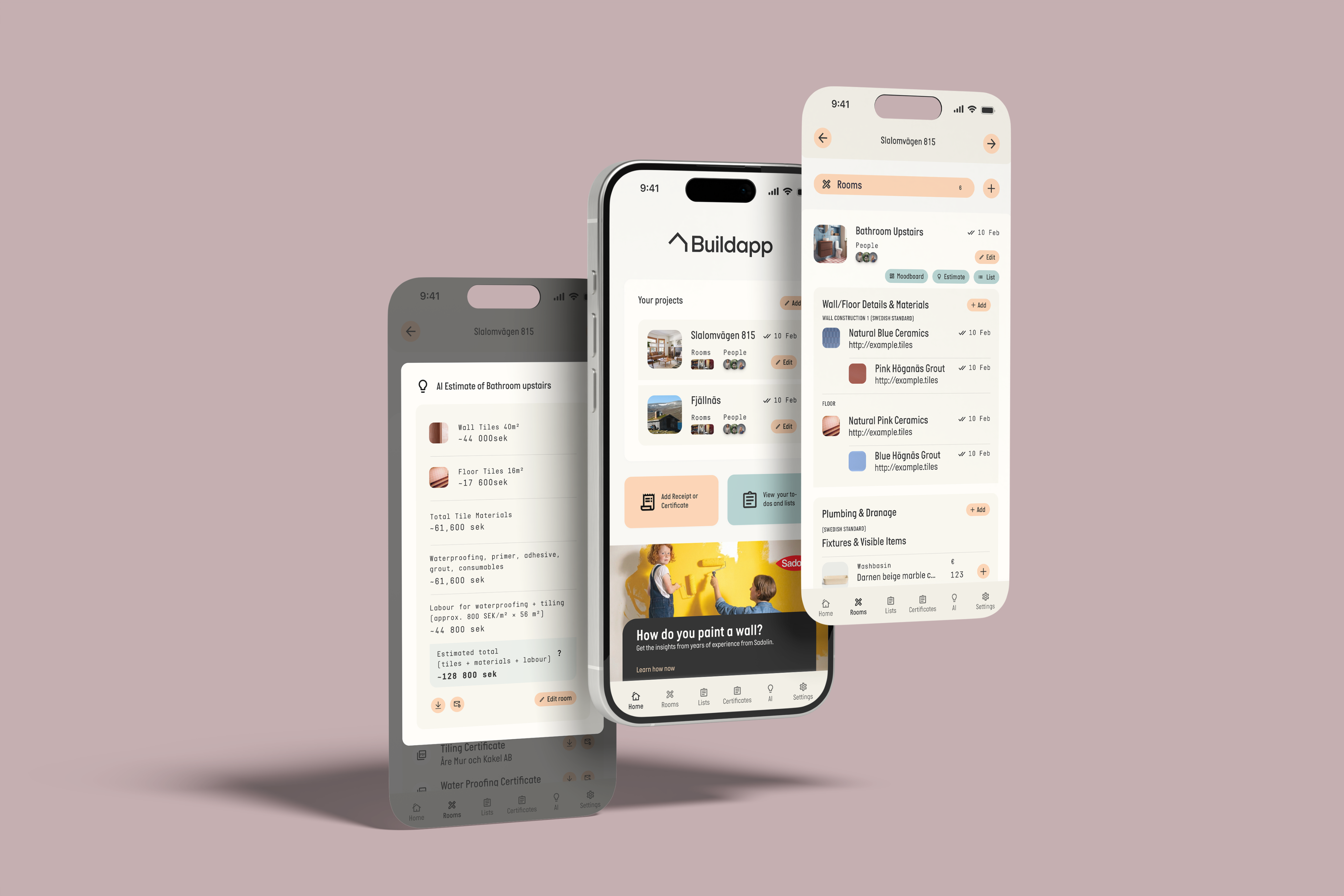 Buildapp creates clarity and traceability for both consumers, craftsmen and the building trade. We aim to fill the gap in home renovation and construction; becoming the go-to tool for collaboration between homeowners, craftsmen, and building supply stores.